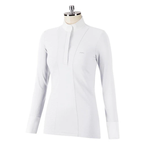 Animo Beffy Show Shirt has contemporary flair with a sophisticated, tailored look and elegant fabrics. The Beffy Competition Shirt has technical jersey sleeves and a jersey body with Costina fabric panels. The Costina rib knit fabric and jersey are luxurious with a very soft hand. Animo Beffy Show Shirt is made in Italy.