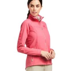 This all-season softshell jacket from Ariat has flattering fitted seams with plenty of stretch for easy movement. Softshell material resists water, wind, and abrasions for durable performance. It is tough but very lightweight and breathable. The longer curved back hem and tall collar add extra coverage in and out of the saddle.