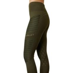 The Ariat EOS Moto Knee Patch Tight for women has extra sporty flair with motorcycle-wear inspired details plus Ariat performance technology for riders. Ladies EOS Moto Tights with silicone grip knees are sleek and supportive with a light compression fit and wide waistband. The Moto KP Tight has AriatTEK Cold Series technology designed to keep your body core warm and dry.