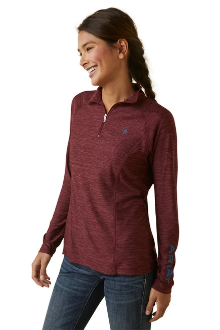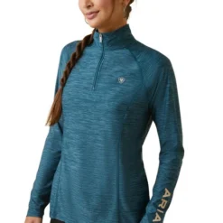 Women’s Ariat Laguna 1/4 Zip Long Sleeve Top is sporty, comfortable, and practical with AriatTEK performance. Easily more than a riding shirt, the Laguna works well for athletics and everyday comfort. The Laguna Top offers sun protection and moisture wicking in a silky poly jersey fabric. Stylish space dye colors add a fashionable flair to your riding and sports wardrobe.