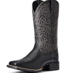 Ariat Round Up Remuda Western Boots for women have a wide square toe and classic Western stitching on black leather. The Round Up Remuda from Ariat has the features riders love, including Ariat 4LR Technology and a Duratread outsole. The wide toe box plus lower heel means all day comfort at the barn.