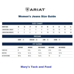 The Ariat Frankie Jean in Regular and Long has a contoured waist with wide belt loops for your favorite wide groovy belt. The look is minimalist with subtle embroidery on the pockets and dark taupe/bronze stitching. The jeans have a pressed cuff that is not tacked so it can be unfolded for riding. Ladies Ariat Frankie Relaxed Straight Leg Jean with Ultra High Rise has trendy retro styling and outstanding comfort and quality.