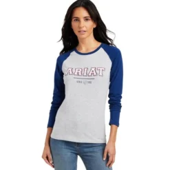 The Ariat Varsity Logo Tee is a cute casual baseball tee for riding, relaxing, or adding a little collegiate charm to your everyday wardrobe. Women’s lightweight tee has fantastic stretch and a soft, silky feel thanks to the cotton/spandex blend fabric. A bold Ariat graphic and contrast color long raglan sleeves are stylish and sporty.