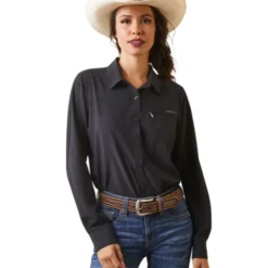 Women’s Ariat VentTek II Stretch Shirt is performance riding wear designed to provide comfort and style all day. Ariat’s lightweight long sleeve VentTEK Shirt delivers peak performance with moisture wicking, breathable fabric technology. With hidden ventilation across the shoulders, UPF 50+, and underarm gussets for mobility, this Ariat riding shirt has it all.