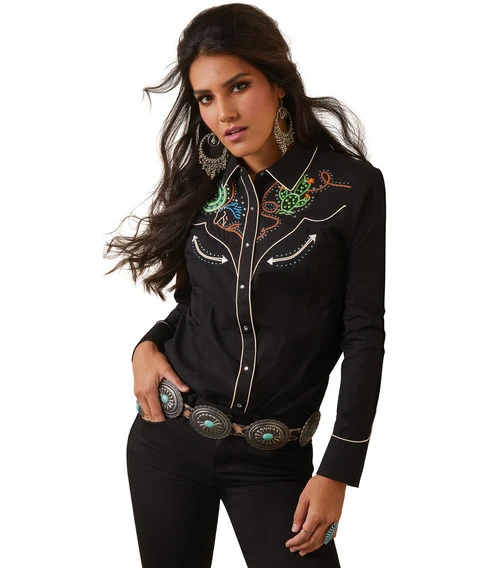 Ariat Wynette Cactus Yoke Snap Shirt has retro flair and a dash of bling for cowgirl style with a sense of fun. Inspired by vintage Las Vegas neon, the embroidery and crystals are all about Western glam.