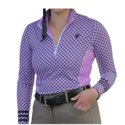 Arista Triple Bar Gingham Quarter Zip has a 9″ zipper and an elegant Arista logo printed at the chest. The sides of the shirt are a solid color and the sleeves are accented with printed stripes. Enjoy the luxurious soft feel of this practical base layer and its superior athletic performance. The Triple Bar Gingham Quarter Zip has extra stretch with its 21% Spandex content so riders get total range of motion. The Triple Bar Gingham Quarter Zip is from the Arista Equestrian Spring Elan Collection.