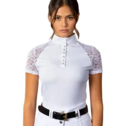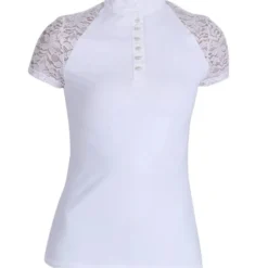 Womens’ Aubrion Moorgate Short Sleeve Show Shirt is beautiful and classy with a feminine and flattering design. The Moorgate Show Shirt has a quarter length placket with elegant pearl buttons. The short raglan sleeves are stretch lace for a sophisticated dash of romance. The all-white short sleeve Aubrion Moorgate Show Shirt is versatile for many riding disciplines.