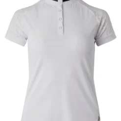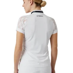 B Vertigo Lauren Show Shirt is made with a stretch pique technical fabric that’s light and cool. It is breathable, moisture wicking, and quick drying for athletic performance. The Lauren Show Shirt has an embroidered B Vertigo logo at the upper back, just below the collar. Women’s horse riding competition shirt with lace short sleeves is cutting edge, stylish women’s equestrian apparel at a price you’ll appreciate. B Vertigo from Horze Equestrian prides itself in using modern, technical fabrics in designs that are feminine and flattering.