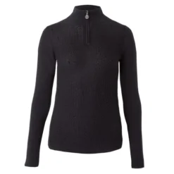 The knit B Vertigo Ruth Sweater is a key piece for your cold weather riding wardrobe. It’s lightweight so it works well for multi-season enjoyment. The mix of cable knit and smooth knit plus quarter zip is perfect for layering with shirts, vests, and jackets. The Ruth Sweater from B Vertigo will easily add style power to your everyday wardrobe, too!