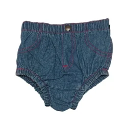 The Baby Wrangler Denim Diaper Cover for Girls in sizes 3 months – 24 months will start your baby off right with classic Wrangler jeans style! The soft, stretchy denim diaper cover has gently elasticated leg openings and waist so it stays on securely but won’t squeeze or bind.