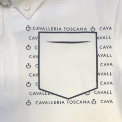 Cavalleria Toscana Boys CT Pocket Competition Zip Polo is a great show ring look for young male riders. Boys’ white competition polo is crisp and professional with a white poplin button down collar and sealed quarter zip with CT logo pull. At the front, a unique CT logo and the Cavalleria Toscana name are printed in black in a repeating pattern. The shape of a pocket is printed over the words. Fun and clever, while keeping the upscale equestrian look.