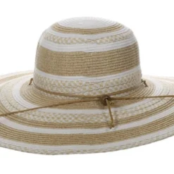 The Capelli Yuri Striped Toyo Straw Hat has a beautiful, timeless look with its neutral color palette and graceful lines. The Yuri Hat is from the the Capelli Straworld Collection at Dorfman Hats. The alternating white and beige stripes and patterns of this ladies UPF50+ sun hat are perfect for the beach, pool, resort, picnics, and a sunny day at the races.