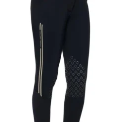 Cavalleria Toscana Embossed Silicone Stripe Breeches have ergonomic seams and stretch knit sock for a perfect fit while silicone grip knees ensure stability in the saddle. The wicking, quick-drying, and antibacterial fabric launders beautifully. Add a fashion forward look to your horse riding wardrobe with the Women’s Cavalleria Toscana Embossed Silicone Stripe Knee Grip Breeches in Tortora or Navy.