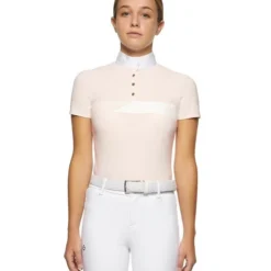 CT Racing Stripe Girl’s Competition Polo from Cavalleria Toscana is sporty and feminine with a great fit and technical performance fabric. The young rider’s short sleeve competition polo in Grey or Pink has white stripe accents and signature Cavalleria Toscana branding. A white poplin collar and quarter length snap placket are crisp and neat for showing.