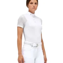 Cavalleria Toscana Jacquard Bib Show Shirt is breathable, quick drying, and manages moisture to prevent odors. It is lightweight and easily tucks into breeches yet is durable and suitable for frequent use. The exceptional stretch and athletic fit of the Cavalleria Toscana Jacquard Competition Shirt are ideal for horse showing with elegant feminine flair.
