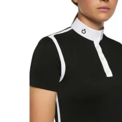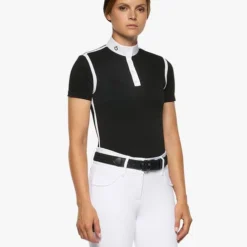 Cavalleria Toscana Pique Contour Polo Shirt with short sleeves has a short button placket and extra sharp styling in black and white. Women’s competition shirt from Cavalleria Toscana has a sophisticated look and slim yet stretchy fit.