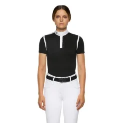 Cavalleria Toscana Pique Contour Polo Shirt with short sleeves has a short button placket and extra sharp styling in black and white. Women’s competition shirt from Cavalleria Toscana has a sophisticated look and slim yet stretchy fit.