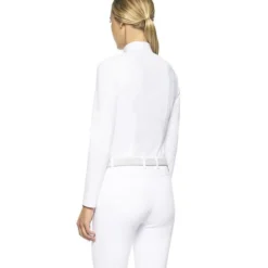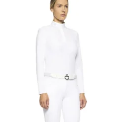 Women’s Structured Poplin Bib Long-sleeved Competition Polo from Cavalleria Toscana is made with technical jersey that has both elegance and functional performance built in. The fabric is highly breathable, quick drying, and regulates heat and moisture. The Poplin Bib Competition Polo has a white collar and structured bib for a crisp show ring look.