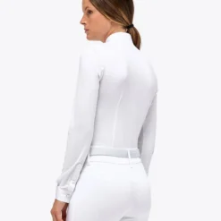 The Poplin Pleats Competition Shirt from Cavalleria Toscana has a feminine, athletic fit with bust darts and shaping seams. The women’s luxury equestrian competition shirt helps riders stay cool and comfortable as it wicks moisture, dries fast, and helps prevent odors from forming. The Cavalleria Toscana Poplin Pleated Bib Competition Shirt has a timeless look and all the performance capability you need for your best ride.