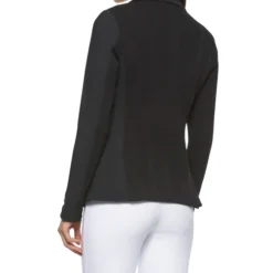 Cavalleria Toscana R-EVO Jersey Tech Knit Show Jacket has three buttons and low key styling. It’s water repellent, UV protective, and antibacterial to stop odors from starting. The two zippered vertical front pockets add convenience. The tech knit jacquard allows extra ventilation and cooling on hot show days. The Cavalleria Toscana R-EVO Jersey Tech Knit Show Jacket is available in Black and Navy.