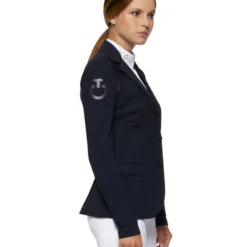 Women’s R-EVO Jersey Tech Knit Show Jacket from Cavalleria Toscana offers a classic cut, feminine lines, and highly breathable technical fabrics. The four-way stretch jersey plus technical knit jacquard inserts on the back and on the sleeves ensures total comfort and range of motion for equestrian competition.