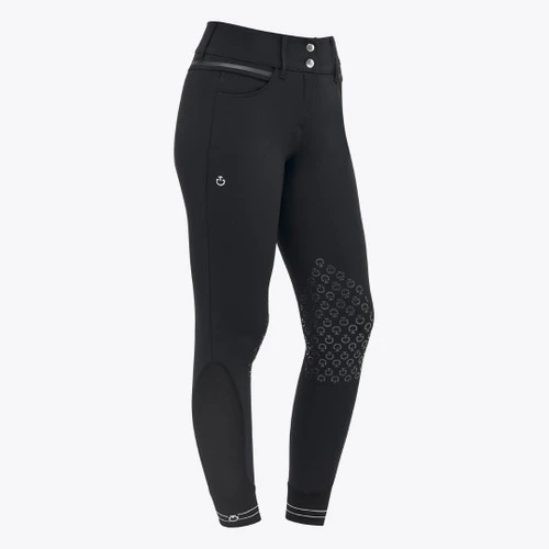 Cavalleria Toscana Silicone Logo Breeches in knee grip style are a riding wardrobe necessity with technical function and classic CT style. Ladies breeches have a high waist and contoured wide waistband that’s designed for flattery and riding comfort. Ergonomic seams and stretch socks ensure an outstanding fit.