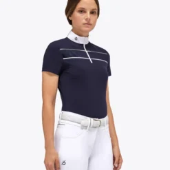 Ladies Cavalleria Toscana Team Daytona Short Sleeve Competition Polo in blush, blue, or white has a crisp, modern look to go with the comfortable feel. Women’s equestrian show shirt is made with premium technical fabric that manages moisture, prevents odors from forming, and resists stains. The Team Daytona Short Seleve Competition Polo is another beautiful show ring look from Cavalleria Toscana!