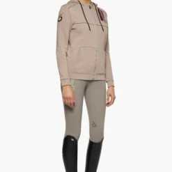 Cavalleria Toscana Team Daytona Zip Hoodie is sporty and feminine in a pretty blush color with black accents and fun flocked logo. Angled panels and a sleek profile help create a more tailored, refined fit. Women’s Team Daytona casual zip up sweatshirt from Cavalleria Toscana is the perfect lightweight layer for warmth with CT Equestrian style.