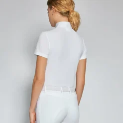 Women’s Cavalleria Toscana Tech Piqué Competition Polo with short sleeves is super clean and crisp with all the modern technology and design for comfort and show arena style. The short sleeved equestrian show shirt is a lightweight stretch jersey combined with stretch knit piqué that is superb for summer horse showing.