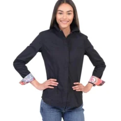 Annie-O Western Show Shirt from Chestnut bay offers UPF 50+ UPF for those long days in the sun. A covered front snap placket hides a low profile full length zipper that ensures a smooth, gap-free polished profile in the saddle. Authentic Liberty London fashion prints coordinate with the White, Black, Hydrangea, Hunter, Lavender, or Eclipse shirt colors to suit your style.