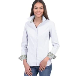 Chestnut Bay Annie-O Western Show Shirt for ladies is the perfect contemporary Western horse show shirt that is flattering and geared for performance. Women’s Annie-O Western Show Shirt is made with a lightweight stretch fabric that is breathable and manages moisture. The back yoke is mesh lined for extra air circulation and cooling.