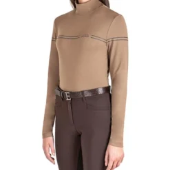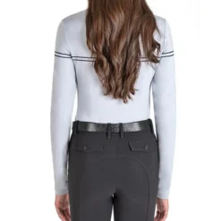 Classic and elegant Equiline Eojie Second Skin is the perfect training shirt for cooler weather. The very lightweight tech knit is breathable, soft, and stretchy for ultimate riding comfort. The tall collar provides extra coverage and protection from the elements.