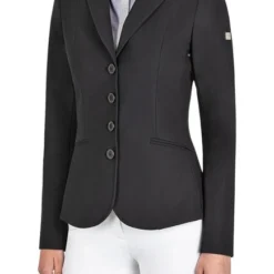 Womens’ Equiline GrideG Show Coat features B-Move technical softshell fabric that allows effortless freedom of motion with outstanding fit and style. The GrideG Show Coat has a four button front closure with lovely Swarovski Strass crystals. Low key Lurex piping enhances the show ring sparkle and elegance.