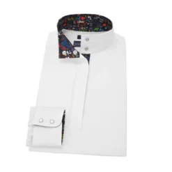 Women’s Essex long sleeve white show shirt has a tapered, athletic fit with back darts for a professional, neat appearance with or without a coat. The quarter snap placket is covered for a clean look under your show coat. The straight wrap collar closes securely with snaps while showing then unsnaps to reveal the exclusive fabric trim. Essex Classics performance riding shirt fabric has antibacterial and deodorizing elements for all day freshness.