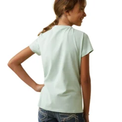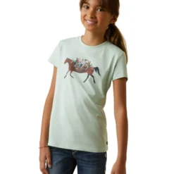 Ariat Harmony Short Sleeve Tee for girls is a crew neck style that’s perfect for riding, school, and having fun. Kids will appreciate the soft feel of this horse-theme tee that has a feminine fit and all-day comfort. Kids Ariat Harmony Tee is another quality Ariat tee shirt in soft stretch organic cotton.
