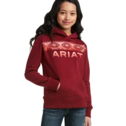Ariat Girls REAL Serape Logo Hoodie in beautiful Rhubarb color is from the Ariat REAL collection of comfortable, practical Western riding clothes with style. Designed for girls who ride, the REAL Serape Logo Hoodie is cute and practical for school and everyday wear. The cotton/poly blend is easy-care and lightweight for multi-season wear.
