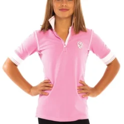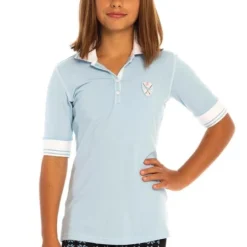 Goode Rider Girls Champion Polo with elbow length sleeves is a fresh update of the popular Goode Rider shirts with signature equestrian designs. Goode Rider polo shirts are favorites of girls who love the incredibly soft and stretchy fabric and special designs and embroidery. Girls casual shirt is comfortable for riding and has unique equestrian style for school. The Goode Champion Polo for girls is available in Pink and Blue Sky, each with a different horse embroidery design on the back.