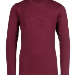 HKM Amelie Long Sleeve Shirt for girls is a soft and stretchy tee with beautiful heart and horse embossed design. Girls casual equestrian shirt in rich Wine Red is lightweight and comfortable in a stretch cotton knit. The HKM Amelie Shirt is perfect on its own and can be paired with a riding vest on cooler days.