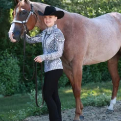 The Irideon Circuit Show Pant for girls delivers a super flattering fit for youth show competitors as well as exceptional comfort and performance. The children’s Western showmanship pant smooths the silhouette and supports muscles with Posi-Core fabric, an Irideon exclusive tech fabric. Circuit Show Pants fit closely for comfort and confidence but are not tight or constricting. They’re perfect for showmanship, halter classes, and under black chaps,