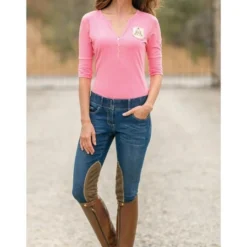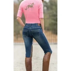 Goode Rider Equestrian Knee Patch Jean is a new, updated take on a favorite riding breech from Goode Rider. This women’s riding jean with classic knee patches is made with a modern fabric blend that creates four-way stretch and a super comfortable feel. Even the suede-look knee patches stretch to give you greater mobility plus grip in the saddle.