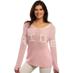 The Goode Rider RIDE Lightweight Sweater distills the essence of the horse girl life in one word! The RIDE Sweater is a soft knit blend that’s lightweight, breathable, and perfect for layering. The letters are spelled across the sleeves and chest, a unique design that adds to its appeal. This lightweight casual sweater is perfect for winter in warmer locales or spring/summer in colder places.