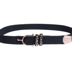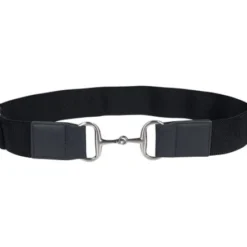 HKM Hunter Elastic Belt for riders is a wide, flat stretch belt with sliding adjustment and unique snaffle bit front closure. The surcingle style Hunter Elastic Belt from HKM comes in three versatile colors, all with a silver colored buckle.