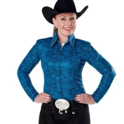 Hobby Horse Limited Edition Jeanee Show Blouse can be worn alone or layered under a vest, making it a great addition to any competitor’s Western show wardrobe.