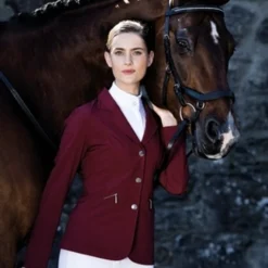 Beautiful Horseware equestrian jacket has a contrast lining plus narrow piping at the collar. Slash pockets at the hip have hidden silver zippers with visible silver zipper pulls. So chic! Three-button competition coat features a single back vent and signature Horseware buttons and logo on left sleeve. Lots of versatility for jumpers and hunters with its classic 3-button style and bold color!