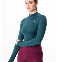 Horseware Keela Tech Base Layer for women is a smooth and silky long sleeve technical riding top with excellent stretch and moisture wicking comfort. Ladies equestrian shirt with a quarter zip and slight mock collar has a modern, sporty look and comes in flattering colors.