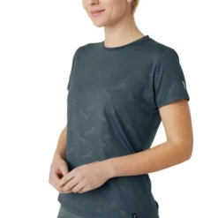 The Horze Nina Horse Print Tech Tee is cute and flattering with a crew neckline and soft lightly textured fabric. The ribbed texture contrasts with the smooth fabric leaping horses in an all-over pattern. The Nina T-Shirt is very stretchy and lightweight and so versatile for summer riding and recreation.