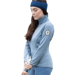 Irideon Women’s Radiant Half Zip is a base layer riding shirt with all the stretchy, soft, warm comfort you could want. The double-brushed interlock knit is extra cozy and delivers light compression to support muscles. Elegant rose gold accents add a dash of elegance to the Blueprint and Henna shirt colors.