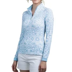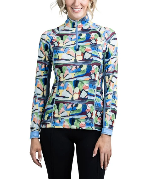 Choose a super soft and silky UPF30+ Kastel Denmark Signature Print Raglan Sleeve Sun Shirt for a more comfortable ride! Women’s raglan long sleeve sun shirt from Kastel Denmark comes in stylish signature prints to upgrade and refresh your wardrobe. Quarter zip equestrian training shirts not only look chic, they help protect your skin from damaging ultraviolet rays.