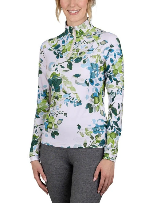 Ladies Kastel Emerald Watercolor Floral Shirt in line is a dreamy, color-rich print with a variety of hues to match your favorite riding breeches and tights. The stretchy fabric is cool and breathable while the soft mesh under the sleeves allows extra airflow. Wear the Kastel Denmark Watercolor Floral Shirt for horse riding, golf, hiking, and more.
