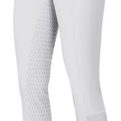 Women’s flattering full seat riding breech has flexible, grippy Kerrits Stick silicone print. Affinity Ice Fil Breeches have a traditional front zip and 2 snaps and wide waistband with belt loops that accommodate your show belts. A stretch panel at the lower leg assures a close fit.